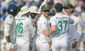 वॉशिंगटन सुंदर ने 92 गेंदों पर 31 रनों की पारी जरूर खेली, मगर दूसरे छोर से उन्हें किसी का साथ नहीं मिला। साउथ अफ्रीका के लिए जीत के हीरो साइमन हार्मर रहे, जिन्होंने दोनों पारियों में मिलाकर 8 विकेट चटकाए। बता दें, साउथ अफ्रीका ने पहली पारी में 159 रन बनाए थे, जिसके जवाब में टीम इंडिया ने 30 रनों की बढ़त हासिल करते हुए 189 रन बनाए थे। साउथ अफ्रीका की दूसरी पारी 153 पर सिमटी थी। टेंबा बावुमा ने 55 रनों की शानदार पारी खेली थी। दो मैच की इस सीरीज में अब साउथ अफ्रीका 1-0 से आगे है। केशव महाराज ने मोहम्मद सिराज को आउट कर भारतीय पारी को 93 रनों पर समेट दिया है। साउथ अफ्रीका ने बड़ा उलटफेर करते हुए इस टेस्ट मैच को 30 रनों से अपने नाम किया।