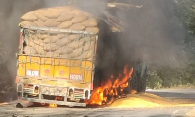 मक्का से भरे ट्रक में लगी आग, दमकल ने समय रहते काबू पाया