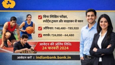 Employment : बिना परीक्षा इंडियन बैंक में क्लर्क बनने का मौका, स्पोर्ट्स कोटा भर्ती जारी — ऐसे करें अप्लाई