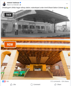 रेल मंत्री अश्विनी वैष्णव ने शेयर की भिलाई रेलवे स्टेशन की तस्वीर, अमृत भारत स्टेशन योजना के तहत हुआ कायाकल्प