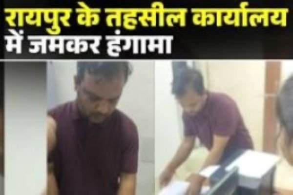 रायपुर: छत्तीसगढ़ की राजधानी रायपुर स्थित तहसील कार्यालय में नकल कॉपी को लेकर जमकर हंगामा होने का मामला सामने आया है। बताया जा रहा है कि तहसील कोर्ट से दस्तावेज की नकल कॉपी नहीं मिलने से नाराज कुछ वकीलों ने कार्यालय परिसर में उत्पात मचा दिया। घटना का वीडियो सोशल मीडिया पर तेजी से वायरल हो रहा है।