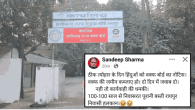 छत्तीसगढ़  Raipur News: वक्फ बोर्ड ने हिंदू परिवारों को जारी किया जमीन खाली करने का नोटिस, 2 दिन में मांगा जवाबरायपुर: छत्तीसगढ़ वक्फ बोर्ड और रायपुर की पुरानी बस्ती के कई हिंदू परिवारों के बीच जमीन को लेकर विवाद गहराता… Read More »